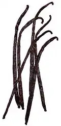 مواد عطر دهندهٔ گوناگونی نظیر وانیل، اسانس، آبلیمو، توت فرنگی و انواع ادویهجات مانند دارچین جهت از بین بردن بوی تخم مرغ، آرد و کرهٔ کیک به کار برده میشود. میوهٔ درخت وانیل دراز و نازک است و به لوبیا شباهت دارد. نوع مرغوب آن پهن است و در حدود ۲۰–۱۸ سانتیمتر طول و ۸ میلیمتر عرض دارد. وانیل یکی از انواع ادویهجات است و به زودی فاسد نمیشود اما برای نگهداری وانیل طبیعی باید دقت زیادی کرد که وانیل خشک نشود و بهتر است که آن را در یخچال نگهداری کرد. به غیر از میوهٔ طبیعی، وانیل به شکل پودر و مایع نیز در بازار به فروش میرسد.[31]
