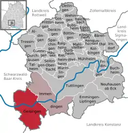 موقعیت گازینگن در منطقه Tuttlingen ![]() | |