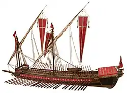 گالِیها در اوایل قدرت نیروی دریایی مدیترانه مورد استفادهٔ جنگی پیدا کردند که از میان آنها میتوان به یونانیان و فنیقیها و رومیها اشاره داشت، کلاسهای مختلفی از این مدل کشتی تا قرن شانزدهم میلادی به جنگ و دزدی دریایی در دریای مدیترانه مشغول بودند، هنگامی که این کشتیها به عنوان کشتی جنگی در نبرد مورد استفاده قرار میگرفتند انواع سلاحهای مختلفی بر روی آنها نصب میشد از جمله کلهقوچ، منجنیق، و در قرنهای بعدتر توپ نیز به مجموعهٔ سلاحهای آنها اضافه شد.