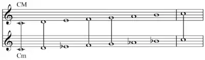 در گام ماژور و مینور، گام موازی آنها دارای فواصل مشترک در یکم درست، دوم بزرگ، چهارم درست، پنجم درست و اکتاو است. حالات و دانگهای گام موازی متفاوت از هم هستند.
