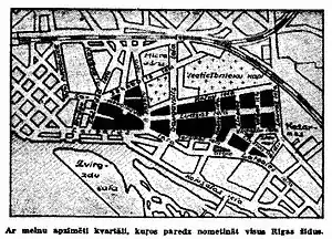 ![]() نقشه گتو ریگا در روزنامهای نازی، تابستان ۱۹۴۱ | |