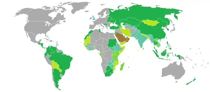 کشورها و مناطق دنیا برحسب نیاز یا عدم نیاز به ویزا برای سفر برای دارندگان گذرنامههای عادی قطری