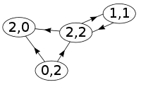 درجهٔ ورودی با و درجهٔ خروجی با نمایش داده میشود. رأس با صفر منبع (به انگلیسی: source) نامیده میشود (چون مبدأ همهٔ یالهای متصل به خودش است) و بهطور مشابه رأس با صفر چاه (به انگلیسی: sink) نامیده میشود.