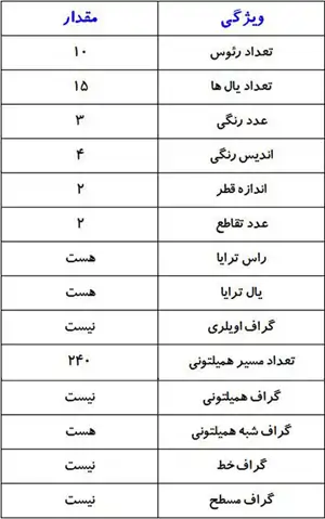 جدول خصوصیات