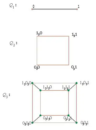 از آنجا که به هر راس یک دنباله k تایی از 0 و 1 متناظر شده و هر راس تنها به رئوسی متصل میگردد که دقیقاً در یک جایگاه با آن تفاوت دارند پس همسایههای هر راس عبارتند از: