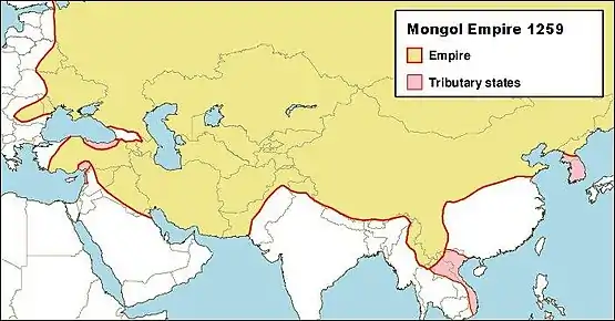 نقشه مناطق تحت حکومت مغول از سال ۱۲۵۹ میلادی (گرجستان جزو این مناطق نیست)