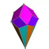 چندوجهی مزدوج گرد پنجضلعی دارای ۲۰ وجه است: ۱۰ وجه مثلثی و ۵ وجه بادبادک و ۵ وجه لوزی: