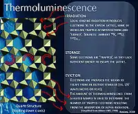 تابشهای پرانرژی در مواد بلوری باعث برانگیختگی الکترونیکی میشوند. در برخی از مواد، این حالتهای برانگیخته برای مدت زمانی بلند توسط آک (deffect)، کاستیها یا نقصهای شبکه بلوری ماده که باعث گسستگی ارتباط معمولی اندرمولکولی یا اندراتمی شبکه بلوری هستند به دام میافتند. از نظر کوانتوم-مکانیک این حالتها، حالتهای ایستای بدون وابستگی رسمی به زمان هستند، با اینحال از نظر انرژی پایدار نیستند. گرما دادن به ماده حالتهای دربند را قادر به تقابل با فونونها میسازد، یعنی نوسانات شبکه، تنزل سریع به حالتهای کم انرژی باعث تابش فوتونها میشوند.