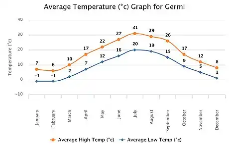 شهرستان گرمی شهرستان گرمی مانند اغلب نواحی ایران دارای اقلیمی نیمه خشک با تابستانهای نسبتاً گرم و زمستانهای نسبتاً سرد میباشد. اب و هوای گرمی نسبت به اغلب نواحی و شهرستانهای استان اردبیل معتدل و ملایم میباشد. آب و هوای این شهرستان تا اندازهای تحت تأثیر آب و هوای منطقه خزر و توالش میباشد و قرار گرفتن اغلب آبادیهای آن در درهها، آنها را از بادهای تندی که در برخی شهرستانهای استان نظیر اردبیل و مشکین شهر میوزد، در امان نگاه میدارد.