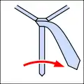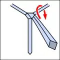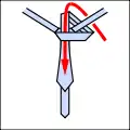گره ویندسور که معمولا" در جلسات، ملاقاتها، مصاحبهها و شرایط ویژه استفاده میشود. (سمت راست) نمایش کامل و مراحل زدن گره ویندسور. (سمت چپ) | ||