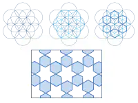 گره شامل طرحهای هندسی، اغلب از ستارهها و چند ضلعیها میباشد که میتواند به طرق مختلفی ساخته شود.[15] الگوهای ستاره و چند ضلعی گر با تقارن ۵ و ۱۰ برابر چرخشی مشخص شدهاست که در اوایل قرن ۱۳ ساخته شدهاست. چنین چهرهها میتواند توسط قطبنما و راست کشیده شود. نخستین الگوهای گره با کپی الگو بر روی یک شبکه منظم ساخته شد. الگو با قطبنما و راست کشیده شد. امروز، صنعتگران با استفاده از تکنیکهای سنتی، از یک جفت تقسیمکننده استفاده میکنند تا یک علامت برش روی ورق کاغذی که در خورشید قرار گرفتهاست را ترک کند تا شکننده باشد. خطوط راست با یک مداد و یک قاعده مستطیل مشخص میشوند. [persian-alpha 1] alpha1 [persian-alpha 2][9] الگوهای گریی که به این شکل ساخته شدهاند براساس تسلیتها ساخته شدهاند، هواپیما را با یک سلول واحد کاشته و بدون شکاف وجود ندارد. از آنجا که کاشی استفاده از عملیات ترجمه و چرخش را انجام میدهد، سلولهای واحد نیاز به تقارن ۲، ۳، ۴ یا ۶ برابر چرخشی دارند.[17][18]