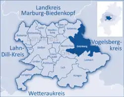 موقعیت Grünberg در منطقه Gießen ![]() | |