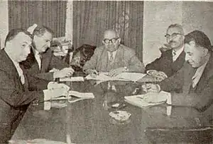 هيئت مدیره گروه فرهنگی هدف، از راست: دکتر حاج غفوری، دکتر رضا قلی زاده، دکتر احمد بيرشک (رئيس هيئت مديره)، هادی رهنما و جم نژاد