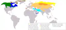 | پراکندگی زیرگونههای وحشی گرگ در جهان | |