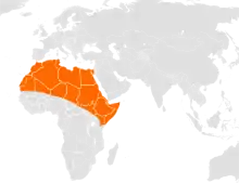 گرگ طلایی آفریقایی یا گرگ آفریقایی یا توآ یک سگسان بومی شمال و شمالشرق آفریقا است. گونهای رایج در شمال غرب و شمال شرق آفریقا و پراکنده از سنگال تا مصر در شرق از مراکش و الجزایر و لیبی در شمال تا نیجریه و چاد و تانزانیا در جنوب هستند.[2]این گرگها با محیطهای بیابانی و دشت و علفزارهای کم اب مطابقت یافتهاند.[3]در کوههای اطلس گونهای در بلندای ۱۸۰۰ متر زندگی میکند.[4]در درجه نخست از بیمهرگان و پستاندارانی به اندازه غزال و گاهی بزرگتر تغذیه میکند. دیگر خوراکهای این جانور را لاشه جانوران، زبالههای انسانی و میوه شامل میشوند. گرگ آفریقایی جانوری تک همسر و قلمرو محور است. ساختار خانوادگی به این گونه است که فرزندان تا یکسال با خانواده باقی میمانند تا به رشد فرزندان تازه زاده شده یاری برسانند.[3]