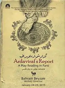 نسخهٔ کوتاه شدهای از گزارش ارداویراف، با کارگردانی بهرام بیضایی روزهای شنبه و یکشنبه ۲۴ و ۲۵ ژانویه ۲۰۱۵، در سالن کابرلی دانشگاه استنفورد بر صحنه برابرِ تماشاکنان خوانده شد.[2][3]