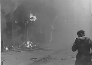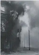 تصویر از خیابان Zamenhofa از سمت شمال. ساختمان ۲۵ زامنهوفا در حال سوختن است.