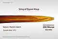 | نیش زنبور عسل سیاه که از بدن قربانی جدا شده و به یک پانسمان چسبیده است | |