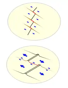 زمانی که صفحات سنگکره در کنار یکدیگر و بدون ایجاد پوسته جدید (مانند پشتههای اقیانوسی) یا بدون تخریب پوسته (مانند نواحی فرورانش)میلغزند گسلهای تبدیلی یا انتقالی ایجاد میکنند. امتداد گسلههای ترادیس موازی با جهت حرکات صفحات سنگکره بوده و در واقع در بین دو پشته اقیانوسی قرار دارند. اغلب گسلهای ترادیسی در پوستههای اقیانوسی قرار دارند اما تعداد کمی از آنها مانند گسل واقع در کالیفرنیا در پوسته قارهای نیز مشاهده میگردد. در حد فاصل بین دو پشته اقیانوسی صفحات سنگکره در خلاف جهت یکدیگر حرکت میکنند واین امر موجب ایجاد زمینلرزه میگردد. در واقع گسلهای ترادیسی بخشهایی از یک زون شکستگی بزرگتری هستند که به لحاظ زمین لرزهای فعال هستند.[2]