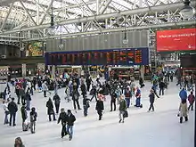 - ایستگاه مرکزی گلاسگو (انگلیسی: Glasgow Central Station) که علاوه بر قطارهای درونشهری، ارتباط گلاسگو را به شهرهای جنوبی و شرقی بریتانیا از طریق خط آهن برقرار میکند. شرکتهای ویرجین (به انگلیسی: Virgin Trains) و نشنال اکسپرس (به انگلیسی: National Express) ارتباط مستقیم و سریع بین گلاسگو و لندن را برقرار میکنند.