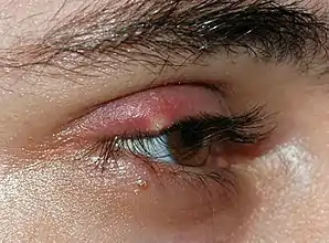 | An external stye on the upper eyelid | |