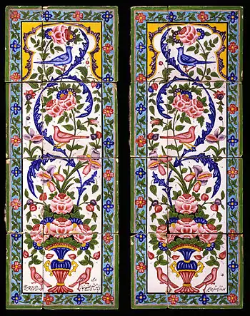 رنگآمیزی نقشهای گل و مرغ و بهطور کلی نگارگری ایرانی واقعگرا نیست و نقاش در انتخاب رنگها کمابیش آزادی عمل دارد.