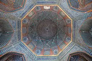 - ۱- گنبد نار: رایجترین نوع گنبد در ایران است. فرم این نوع گنبد کروی است و پوشش اصلی سقف اکثر مساجد مهم ایران نظیر مسجد جمعه، مسجد امام و مسجد الله وردیخان در اصفهان و مسجد جامع یزد و مسجد و مدرسه آقابزرگ در کاشان میباشد. گنبد این مساجد به صورت دو پوسته یعنی در واقع دو گنبد بر روی هم اجرا شدهاست. در گنبدهای دو پوسته، پوسته زیرین معمولاً باربر و پوسته روئین جهت نماسازی و همچنین مقابله با عوامل جوی است. یکی از دلایل دو پوسته زدن گنبد به لحاظ توجه و مقیاس ساختمان شهر است. از آنجایی که گنبدهای بزرگ و بلند نشانه اهمیت ساختمان میباشند و همچنین این گنبدها باید با مقیاس شهر تطبیق کنند و ترجیحاً از قسمتهای مختلف شهر دیده شوند، لذا سعی میشود که گنبد فوقانی را بلندو مرتفع احداث کنند؛ ولی برای اینکه مقیاس تالار زیر کنبد زیاد ناهمگون نباشد و مانند تونلی عمودی به نظر نیاید، پوسته زیرین در ارتفاع کمتری اجرا میشود.