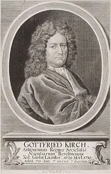 - مشارکتکنندگان ویکیپدیا. «Gottfried Kirch». در دانشنامهٔ ویکیپدیای انگلیسی، بازبینیشده در ۸ مه ۲۰۲۱.