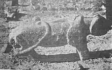 مجسمه سنگی شیری در گورستان شادباد مشایخ.