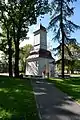 - A restored memorial chapel on the site of the former cemetery