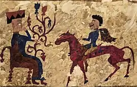 ![]() Decorated tapestry with seated goddess Tabiti and rider, Pazyryk Kurgan 5, Altai, Southern Russia c. 241 BCE.[1] | |