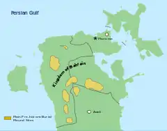 یک گروه دانمارکی در دهه ۵۰ میلادی در قلعه بحرین پایتخت بحرین در عصر برنز در حال حفاری بودند که گورپشتهای را باز کردند و به وسائلی از ۳۷۰۰-۴۱۰۰ سال قبل برخورد کردند.[2][3] افراد دیگری نیز شروع به حفاری دیگر قبرها کردند، و نمایی از ساختار و محتویات این گورها را ارئه دادند.[4][5]