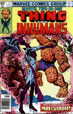 ![]() گورگون (سمت چپ و عقب) بر روی جلد مارول دو در یک سری اول، شماره ۷۲ام (فوریه ۱۹۸۱) | |