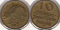 | سکهها | ۱، ۲، ۵، ۱۰ Pfennig ½، ۱، ۲، ۵، ۱۰، ۲۵ Gulden | ||||