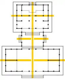 نقشه معبدی شینتویی با سبک گونگن. از بالا ابتدا هایدن قرار دارد و سپس هوندن یا محراب اصلی