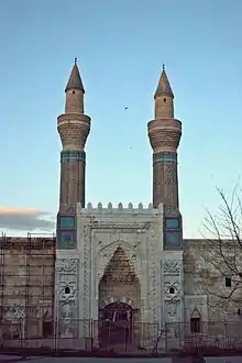 Gök Medrese during restoration Minarets