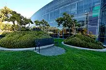 ساختمان اصلی گوگل در مانتین ویو، کالیفرنیا قرار دارد و با نام «گوگلپلکس» شناخته میشود. واژه گوگلپلکس خود آمیختهٔ دو واژهٔ گوگل و کامپلکس (به معنای مجتمع و پیچیده) است و در اینجا منظور بدین موضوع اشاره دارد که اجتماعی بسیاری از ساختمانهای گوگل در آنجا حضور دارند. سالن ورودی آنجا مزین به یک پیانو، شماری سرور قدیمی، و جستارهای تحقیقاتی یک پروژه بر روی دیوار است. تالار ورودی آنجا مملو از توپهای ورزشی و دوچرخهها است. هر کارمندی میتواند وارد قسمت تفریحی شرکت شود که دارای ماشین پایی، رختکن، لباسشویی و خشککن، اتاق ماساژ، بازیهای ویدئویی، فوتبال دستی، پیانو، میز بیلیارد و پینگپنگ است. علاوه بر اتاق تفریح، در آنجا اتاقهایی دارای غذا و نوشیدنی نیز وجود دارد.[106]