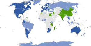 - آفریقا به جز بوتسوانا، غنا، کنیا، لسوتو، نیجریه، رئونیون، سنگال، آفریقای جنوبی، سوازیلند، تونس، اوگاندا و شهرهایی از ماداگاسکار