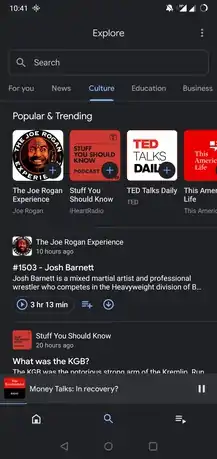 نماگرفت ![]() برنامه اندرویدی گوگل پادکستز در حالت تاریک | |