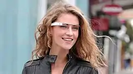 ![]() تصویری از نمونه اولیه عینک گوگل که در ژوئن ۲۰۱۲ در کنفرانس گوگل آی/او معرفی شد. | |