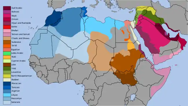 مقوله زبان عربی بر مجموعه زیادی از گویشها و لهجههای گوناگون دلالت میکند که بهطور کلی به سه بخش تقسیم میشود: