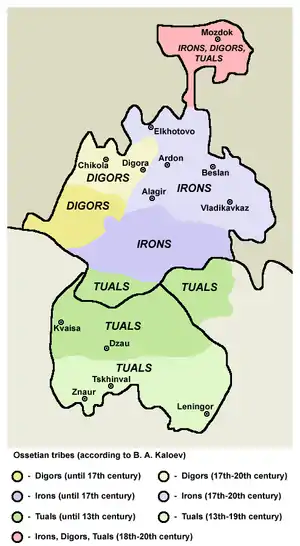 تنها تفاوتی که گویشوران ایرونی اوستیای شمالی و جنوبی دارند تلفظ انسدادی سایشیهای پیشکامی c و ɜ صفیریهای پیشکامی s و z است.[2]