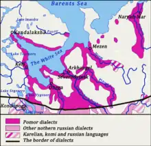 گویش پوموری گویشی از زبان روسی و مرتبط با گویشهای شمالی روسی است که در شمال کشور روسیه مردم پومور بدان صحبت می کنند..این زبان که دارای وامواژه های متععدی از زبان های اورالی نیز می باشد مورد تحقیق و مطالعه نیز قرار گرفته است.دارای ادبیات مکتوب می باشد.از شاعران و نویسندگان پوموری می توان به بوریس شرگین و نیکلای کولیف و نیز استپان پیساکوف اشاره نمود.
