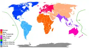 گیاهان بر اساس منطقه (مناطق فلوریستی)، دوره، محیط مخصوص، یا آب و هوا دستهبندی میشوند. مناطق میتوانند زیستگاههای متمایز مانند کوه یا دشت باشند. گیاگان میتواند زندگی گیاه یک دوره تاریخی را در فلورای فسیلی بدانیم. در نهایت، فلورها ممکن است با محیطهای خاص تقسیم شوند: