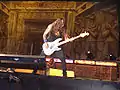 اینگوی مالمستین نوازنده گیتار در حال نواختن گیتار الکتریک به وسیلهٔ پیک