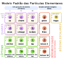 ماده معمولی و نیروهایی که برآن اثر میکنند را میتوان با توجه به ذرات بنیادی توصیف نمود.[97] این ذرات را بنیادی مینامند زیرا ساختار آنها ناشناختهاست و هنوز مشخص نیست که آیا آنها از ذرات کوچکتر و بنیادیتری ساختهشدهاند یا خیر.[98][99] در این میان مدل استاندارد اهمیت فراوانی دارد. مدل استاندارد نظریهای است که با برهمکنشهای الکترومغناطیسی یا هستهای قوی و ضعیف سروکار دارد.[100] آزمایشهای تجربی وجود ذرات سازنده ماده: کوارکها و لپتونها و همزادهای ضدماده آنها و همچنین ذرات نیرویی که واسطه برهمکنشها هستند: فوتونها، بوزونهای دبلیو و زد و گلوئونها، همگی مدل استاندارد را تأیید میکنند.[98] مدل استاندارد وجود بوزون هیگز که به تازگی کشف شد را پیشبینی کردهبود، ذرهای که تجلی میدانی در گیتی است که به ذرات جرم میبخشد.[101][102] به خاطر موفقیت در توضیح طیف وسیعی از نتایج تجربی، گاهی مدل استاندارد را با نام نظریه تقریباً همهچیز میشناسند.[100] هرچند که مدل استاندارد گرانش را توصیف نمیکند و یک نظریه همهچیز واقعی نیرو-ذره هنوز مطرح نشدهاست.[103]