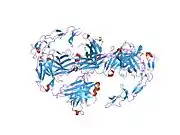 - Hymowitz SG, Christinger HW, Fuh G, Ultsch M, O'Connell M, Kelley RF, Ashkenazi A, de Vos AM (Oct 1999). "Triggering cell death: the crystal structure of Apo2L/TRAIL in a complex with death receptor 5". Molecular Cell. 4 (4): 563–71. doi:10.1016/S1097-2765(00)80207-5. PMID 10549288.