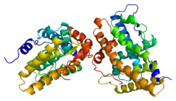 - Williams SP, Sigler PB (May 1998). "Atomic structure of progesterone complexed with its receptor". Nature. 393 (6683): 392–6. doi:10.1038/30775. PMID 9620806.