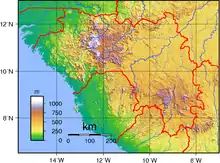 رودها: نیجر، سنگال، بالا، کومبا، مالو و گامبیا قلهها: ناکاکا (۲۸۵۰ متر)