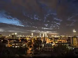 نمایی از یک پارک در شهر گیواتائیم در هنگام شب.